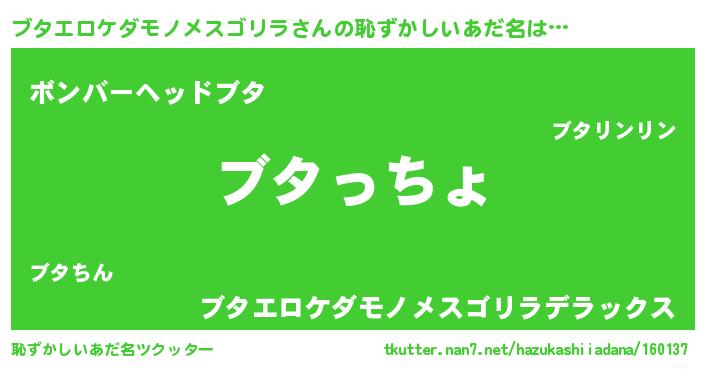 | ヒーロー風カッコイイあだ名 | 『ウルトラブタエロケダモノメスゴリラマン』 |
