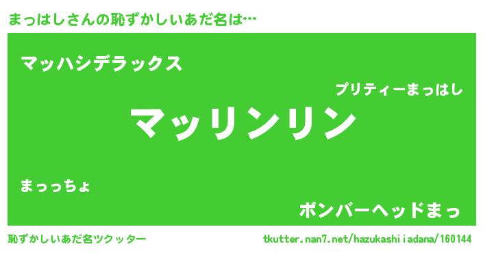 | 男性向けラノベタイトル風あだ名 | 『この素晴らしい世界にまっはしを!』 |