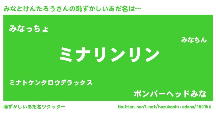 | 意味不明あだ名 | 『とにかく怪しいみなとけんたろう』 |