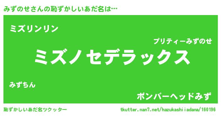 | 意味不明あだ名 | 『自称みずのせ』『ペロリンみずのせ』 |