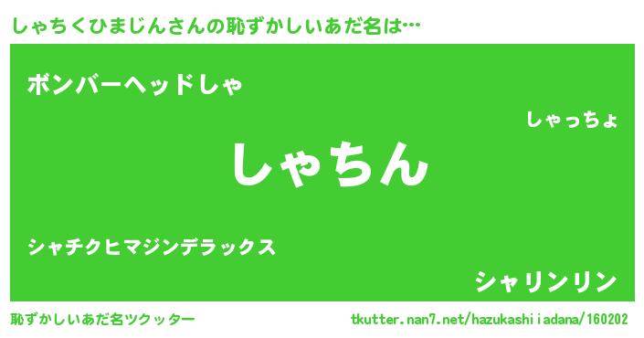 | 意味不明あだ名 | 『永久保存しゃちくひまじん』 |