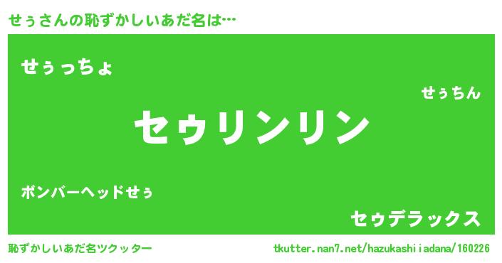 | 女子向けラノベタイトル風あだ名 | 『せぅは平凡を望む』『せぅの雑貨屋さん』 |