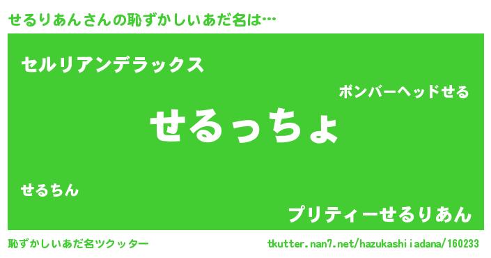 | 意味不明あだ名 | 『住所不定無職せるりあん(85歳)』 |