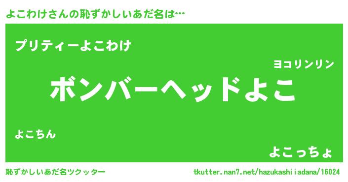 | 女子向けラノベタイトル風あだ名 | 『よこわけ恋絵巻』『よこわけ伯爵の花嫁』 |