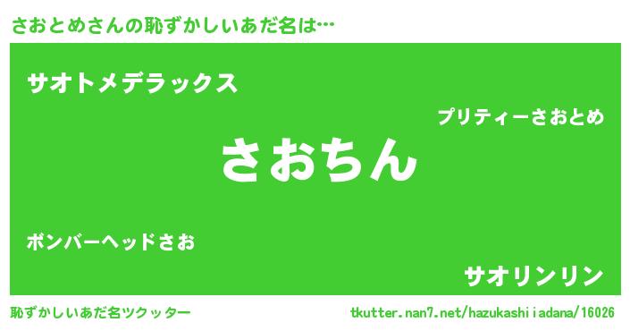 | 意味不明あだ名 | 『永久保存さおとめ』『自称さおとめ』 |