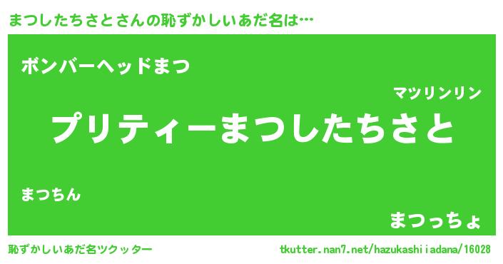 | 胡散臭い通販商品みたいなあだ名 | 『必ず成功するブレスレット…その名も「まつしたちさと」』 |