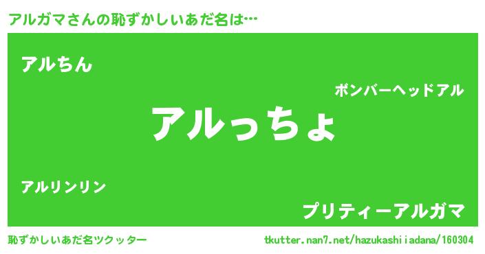 | 男性向けラノベタイトル風あだ名 | 『やはりアルガマの青春ラブコメはまちがっている 』 |