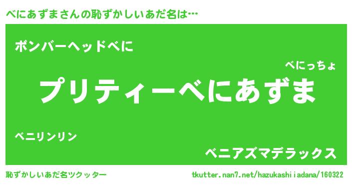 | 意味不明あだ名 | 『ペロリンべにあずま』『自称べにあずま』 |