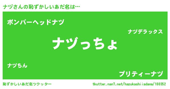 | ヘコむあだ名 | 『豆乳』『ナヅにー』『ナヅ(笑)』 |