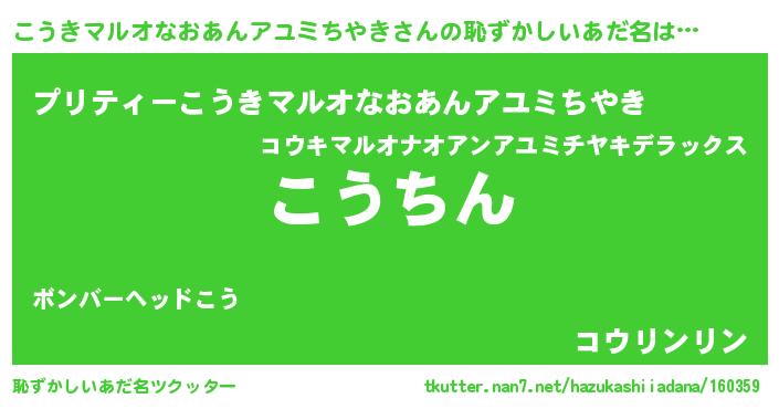 | ヘコむあだ名 | 『こうきマルオなおあんアユミちやき(遠い目)』 |
