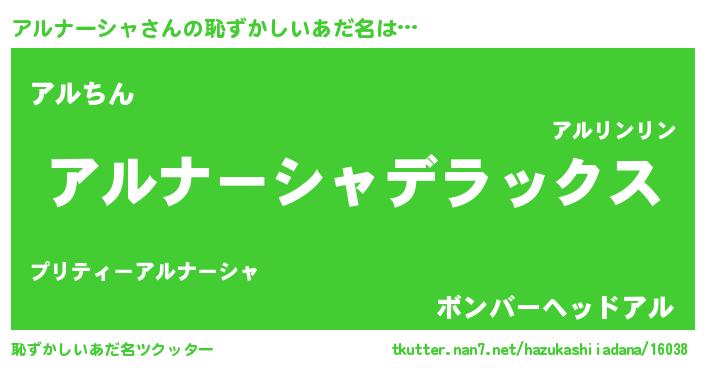 | 意味不明あだ名 | 『自称アルナーシャ』 |