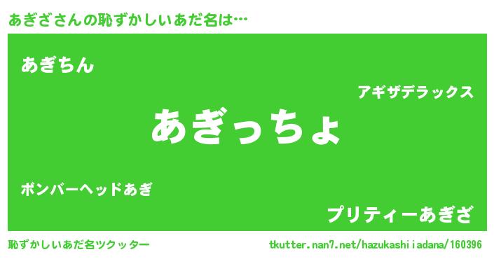 | ヘコむあだ名 | 『つくし』『あぎざ(笑)』『あぎお』 |