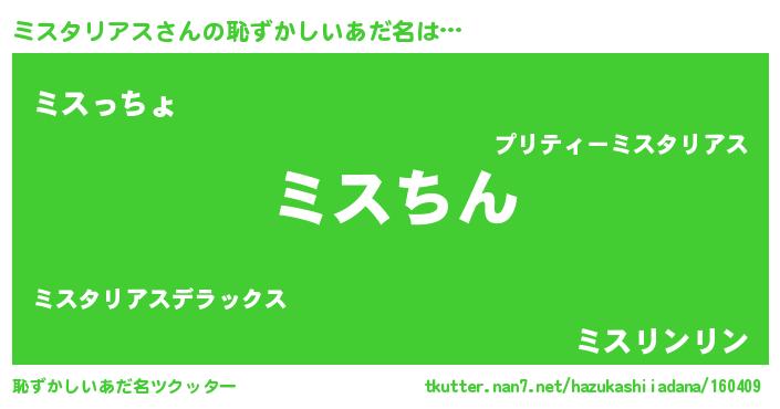 | ヘコむあだ名 | 『ミスタリアス(小並感)』『牛乳』 |