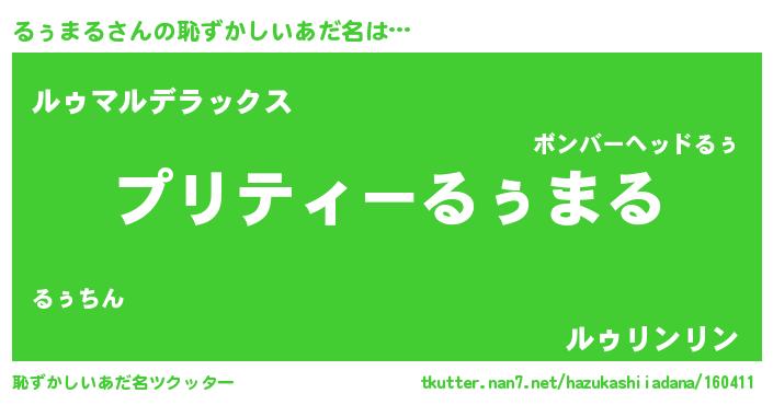 | ヒーロー風カッコイイあだ名 | 『スーパールゥマル』『究極戦士ルゥマル』 |