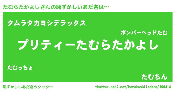 | ヘコむあだ名 | 『たむにー』『たむらたかよし(爆)』 |
