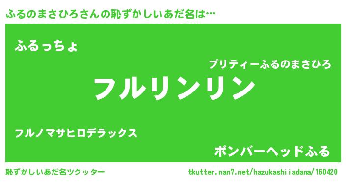 | 意味不明あだ名 | 『とにかく怪しいふるのまさひろ』 |