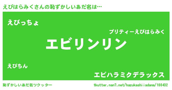 | 意味不明あだ名 | 『とにかく怪しいえびはらみく』 |
