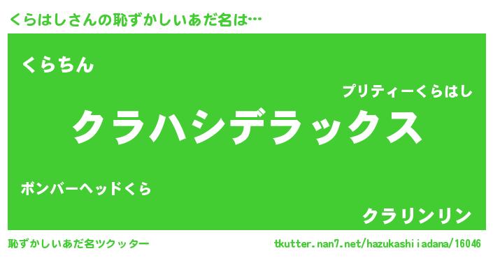 | 意味不明あだ名 | 『自称くらはし』『永久保存くらはし』 |