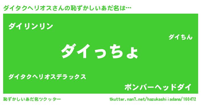 | 男性向けラノベタイトル風あだ名 | 『やはりダイタクヘリオスの青春ラブコメはまちがっている 』 |