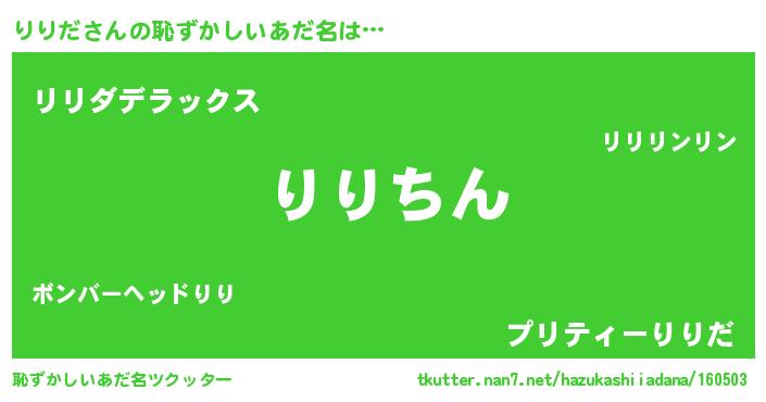 | 可愛いあだ名 | 『りりだママ』『りりうちぇる』 |