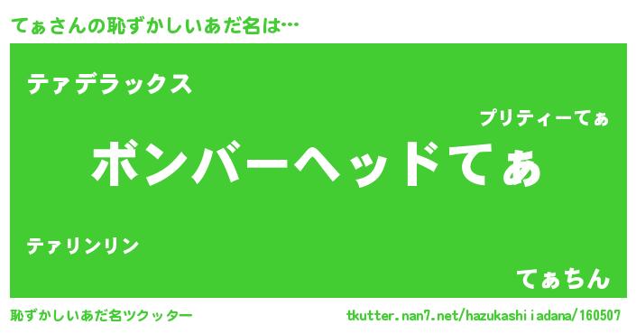 | ヒーロー風カッコイイあだ名 | 『天空の使者てぁ』『超時空戦士テァ』 |