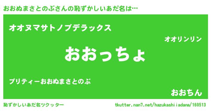 | 女子向けラノベタイトル風あだ名 | 『乙女ゲームの破滅フラグしかない悪役おおぬまさとのぶに転生してしまった…』 |