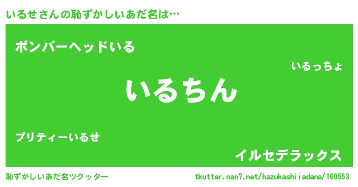 | ヘコむあだ名 | 『いるせ(爆)』『牛乳』『いるにゅー』 |