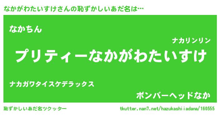 | ヘコむあだ名 | 『なかふぇ~』『なかがわたいすけ(遠い目)』 |
