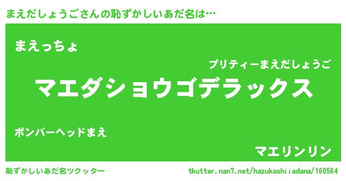 | 男性向けラノベタイトル風あだ名 | 『この素晴らしい世界にまえだしょうごを!』 |