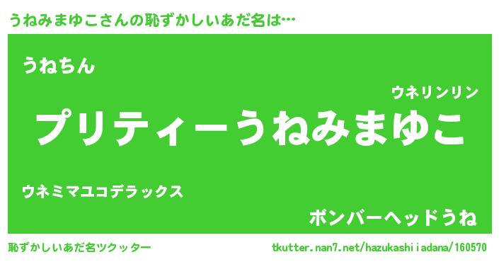 | ヒーロー風カッコイイあだ名 | 『スーパーウネミマユコ』『銀牙騎士ウネ』 |