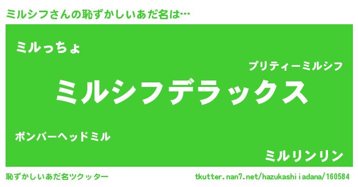 | ヘコむあだ名 | 『なまこ酢』『ミルっぺ』『ミルもー』 |
