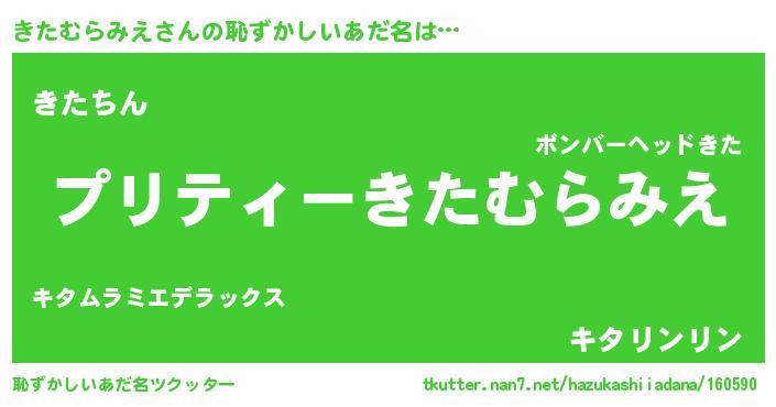 | ヘコむあだ名 | 『きたっふぃ~』『きたむらみえ(苦笑)』 |