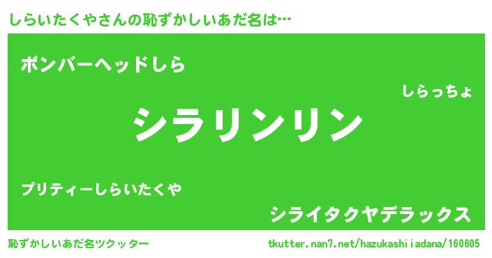 | 胡散臭い通販商品みたいなあだ名 | 『信頼と実績のネックレス…その名も「しらいたくや」』 |