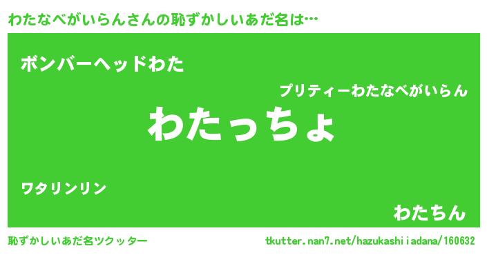 | ヘコむあだ名 | 『酢こんぶ』『わたなべがいらん(遠い目)』 |