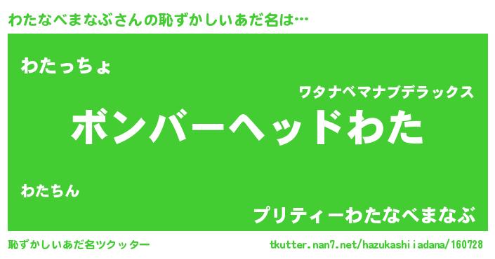 | 女子向けラノベタイトル風あだ名 | 『わたなべまなぶ恋絵巻』 |