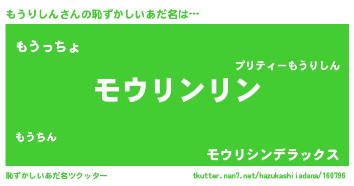 | 男性向けラノベタイトル風あだ名 | 『魔弾の王ともうりしん』 |