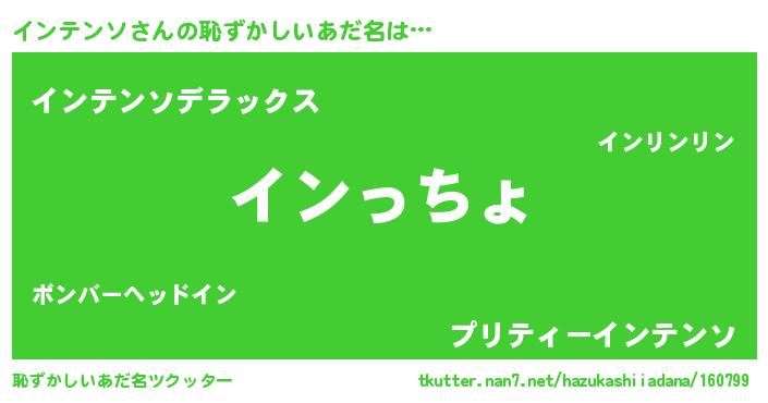 | 男性向けラノベタイトル風あだ名 | 『やはりインテンソの青春ラブコメはまちがっている 』 |
