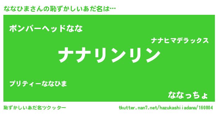| ヘコむあだ名 | 『ななを』『つくし』『ななっふぃ~』 |