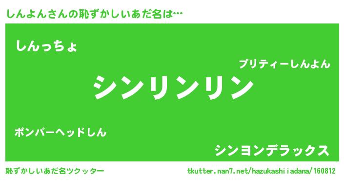 | ピコ太郎風あだ名 | 『シン太郎』『ピシ十郎』『シコ二郎』 |