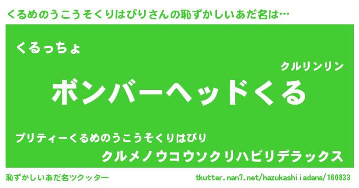 | ヘコむあだ名 | 『牛乳』『くるぷりん』『くるにゅー』 |