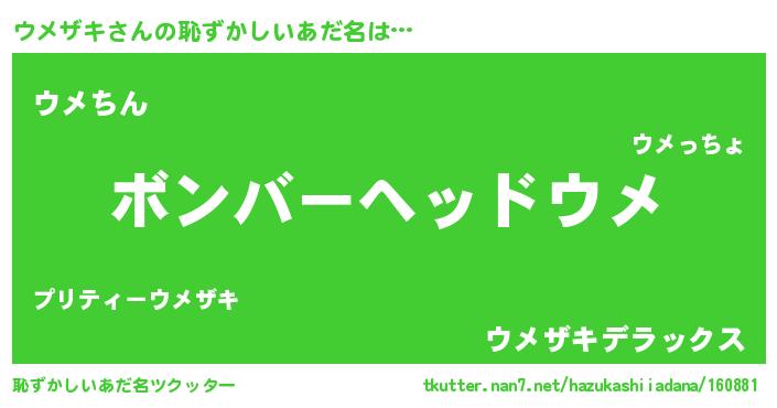 | ポケモン風あだ名 | 『ウメキング』『ウックウザ』 |