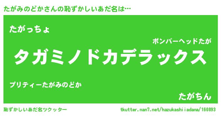 | ヒーロー風カッコイイあだ名 | 『仮面タガダー』『最強戦士タガミノドカ』 |
