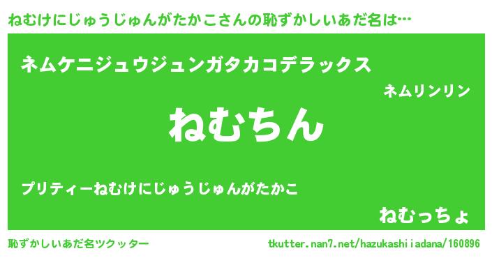 | 意味不明あだ名 | 『永久保存ねむけにじゅうじゅんがたかこ』 |