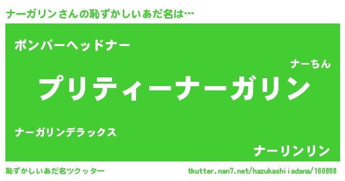| 男性向けラノベタイトル風あだ名 | 『この素晴らしい世界にナーガリンを!』 |