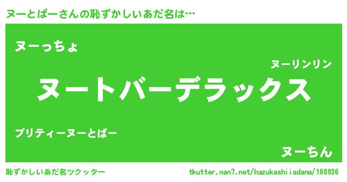 | ヒーロー風カッコイイあだ名 | 『仮面ヌーダー』『最強戦士ヌートバー』 |