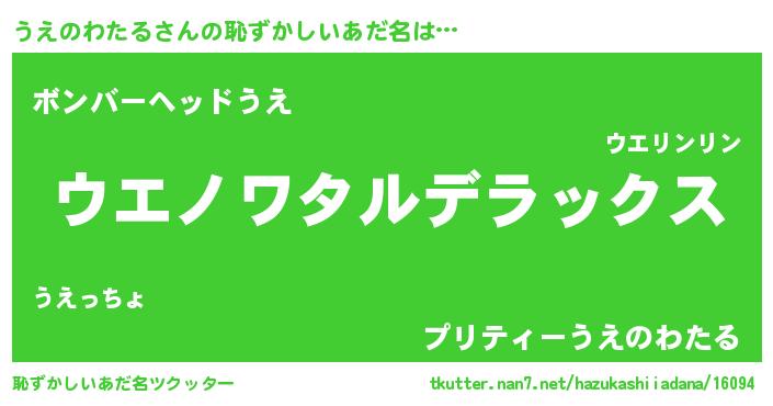 | 女子向けラノベタイトル風あだ名 | 『うえのわたるなんてお断りですっ。』 |