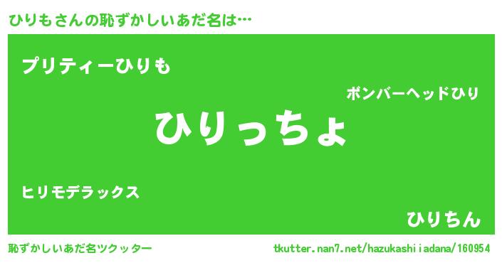 | ヒーロー風カッコイイあだ名 | 『ウルトラひりもマン』『スーパーヒリモ』 |