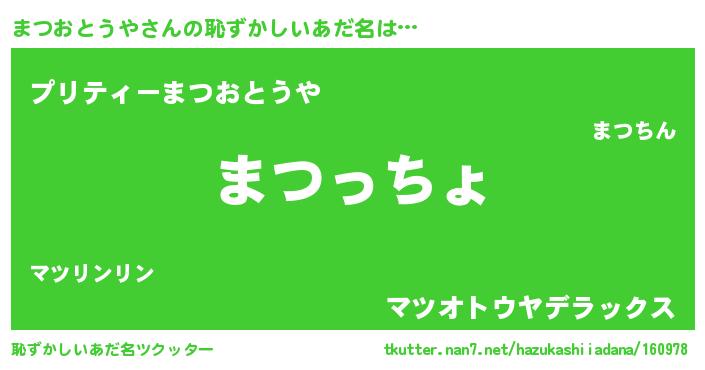 | 意味不明あだ名 | 『まつおとうやフォーエバー』 |