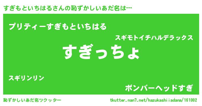| 意味不明あだ名 | 『すぎもといちはるフォーエバー』 |