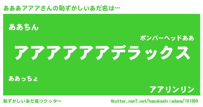 | ヒーロー風カッコイイあだ名 | 『仮面アアダー』『ネオアアアアアア』 |